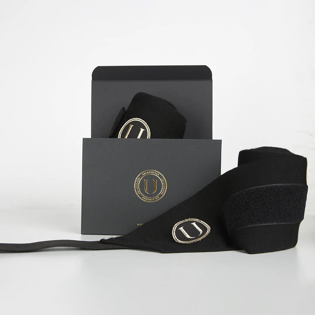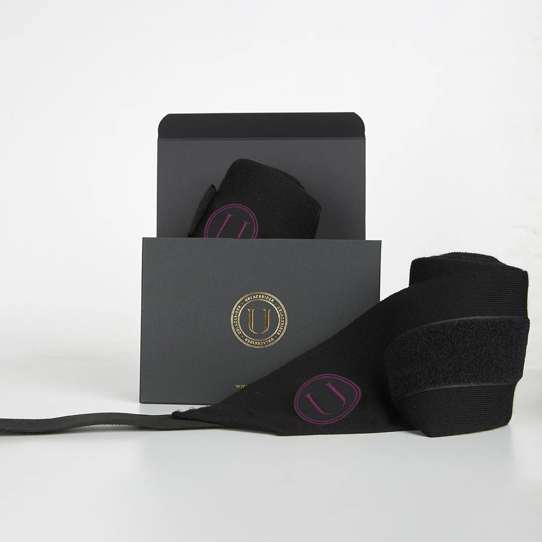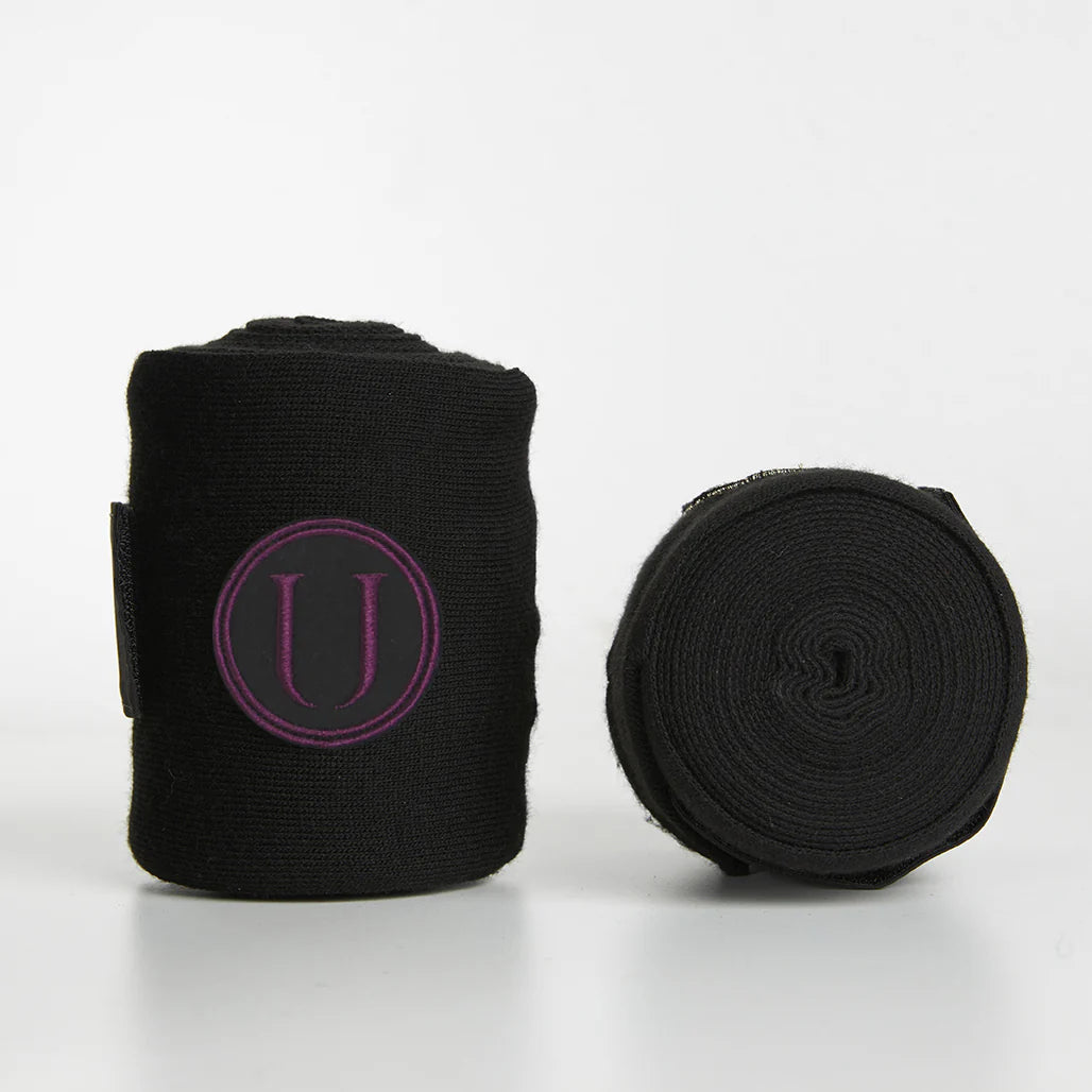 Fasce da riposo in acrilico con copri chiusura in microfibra e patch con logo in filo oro e burgundy.