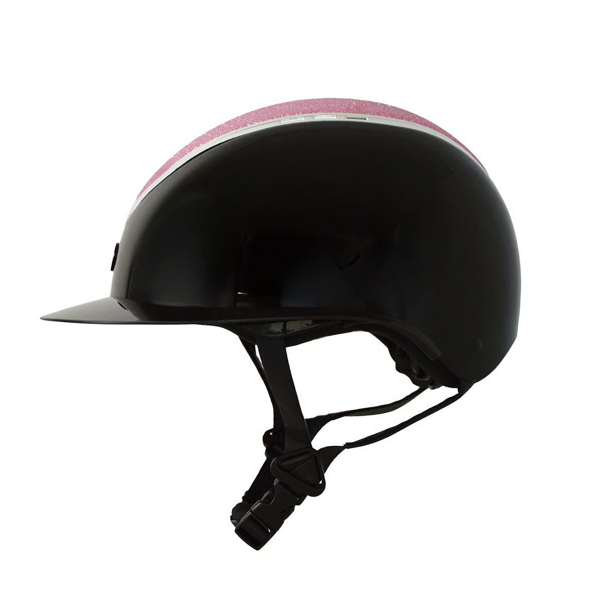 Casco Winner Special regolabile con rotella. Un casco brillante e ben strutturato. Calotta e visiera larga sono lucide e raffinate; il frame cromato aggiunge un dettaglio moderno e i glitter rosa regalano un tocco di femminilità e personalità.