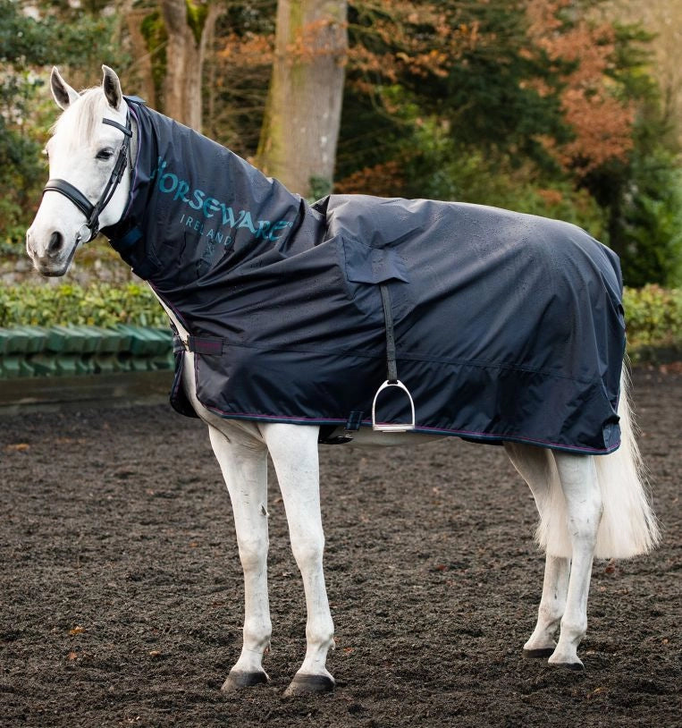 Questa coperta impermeabile leggera e traspirante protegge il tuo cavallo dalle intemperie con una copertura dall'alto alla coda. Dotata di una copertura per il collo che si attacca al sovraccapo tramite una cinghia in velcro sicura, la coperta include due cinghie in velcro sul lato inferiore della copertura del collo per una vestibilità regolabile. Prestando attenzione al posizionamento delle cuciture per una guida confortevole, la singola chiusura frontale, i fori rinforzati per le staffe e la cinghia sotto la pancia consentono una vestibilità sicura.