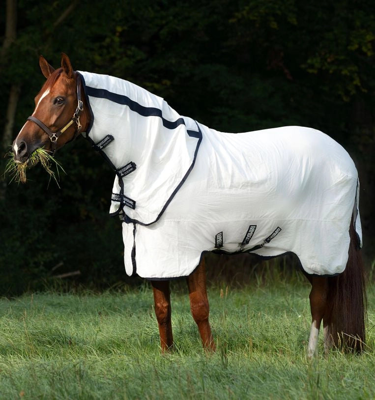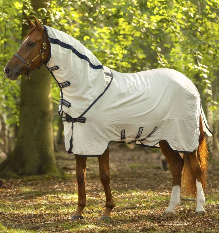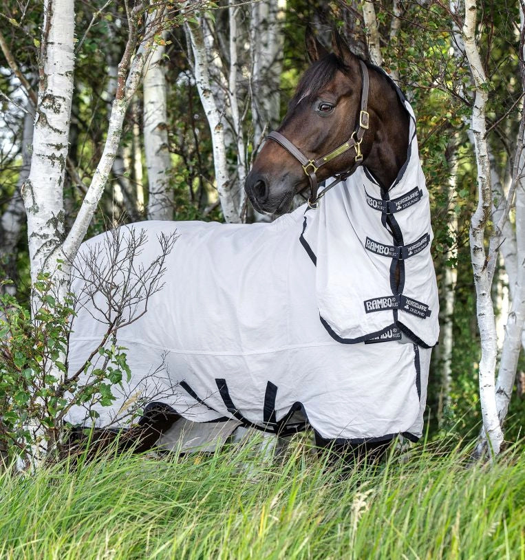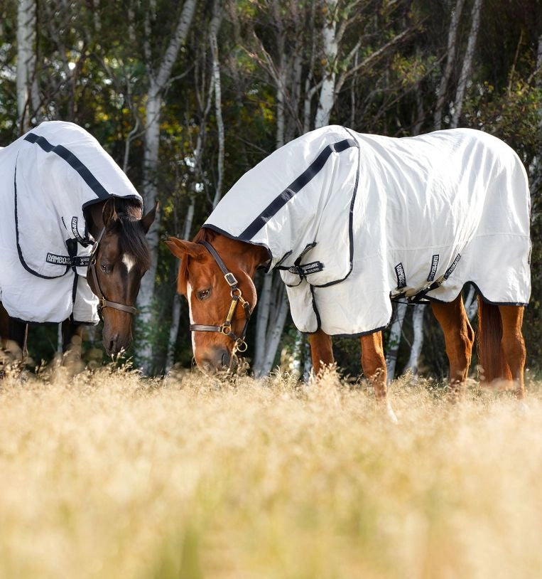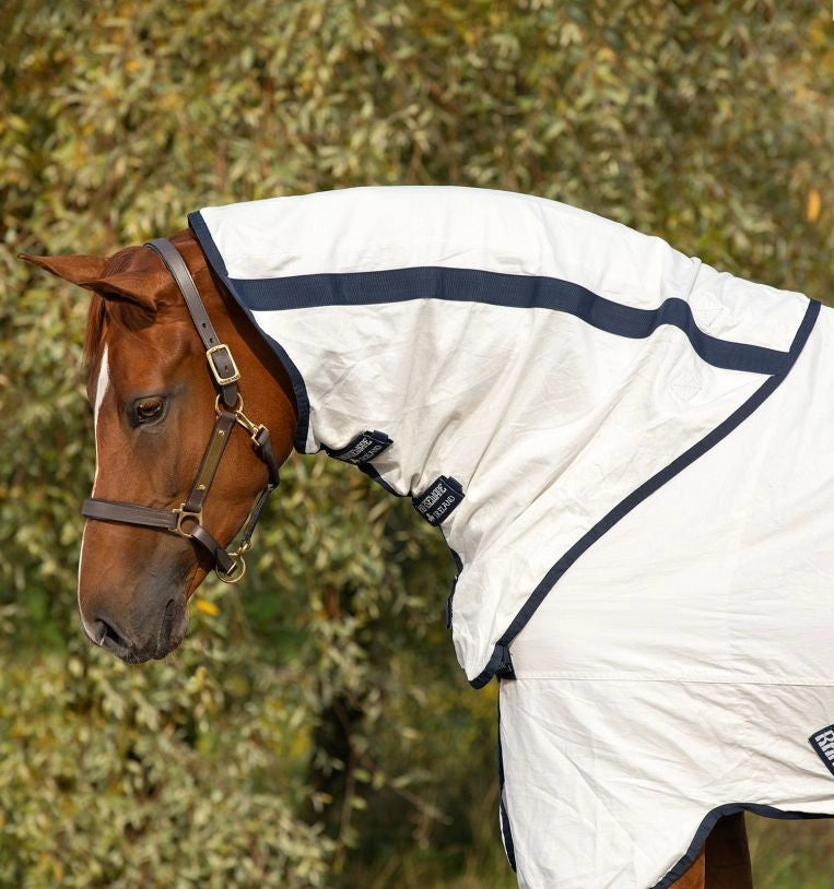 La Rambo® Natura Summer Sheet abbraccia la natura con un tessuto tecnico misto di cotone biologico e canapa sostenibile per creare una coperta estiva che, oltre ad offrire un'eccezionale protezione dai raggi UV, è anche adatta a pelli sensibili. Incorporando un design leggero, questa coperta è ideale per i cavalli sensibili ai raggi UV o allo sbiancamento del mantello, rendendola la scelta perfetta per i proprietari di cavalli con pelle sensibile o problemi di salute del pelo. Questa coperta presenta una chiusura frontale a disco, la quale riduce il peso e previene lo sfregamento. Un design ad arco a doppia gamba garantisce una maggiore libertà di movimento e tre cinghie incrociate sono perfette per una vestibilità aderente.