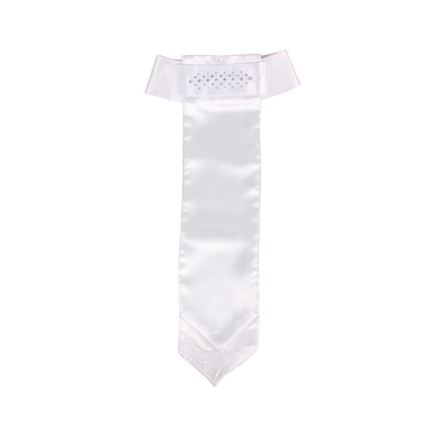 Questa brillante cravatta bianca completa il tuo outfit da gara con un dettaglio elegante con diverse dimensioni di strass. La chiusura a strappo lo rende facile da fissare.
