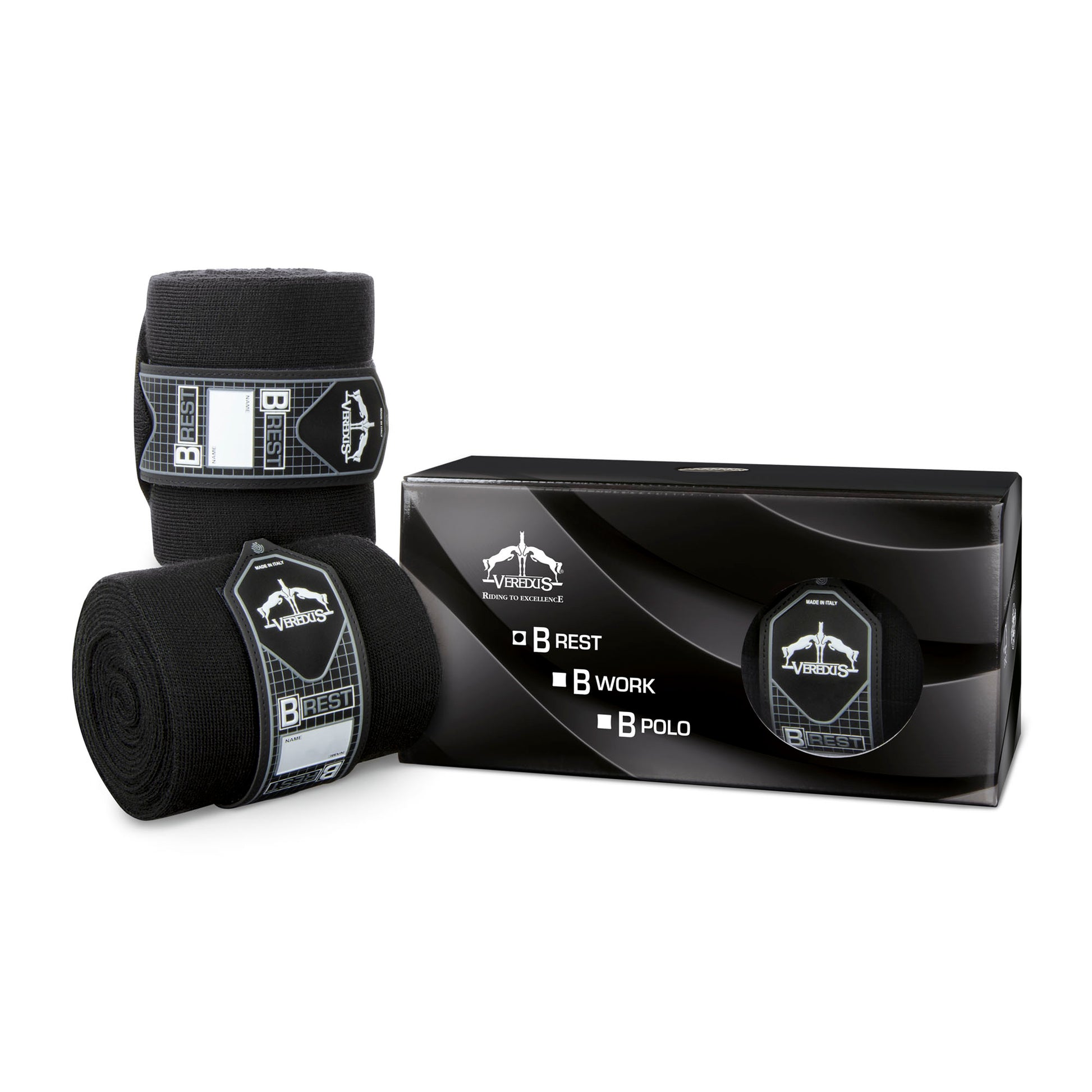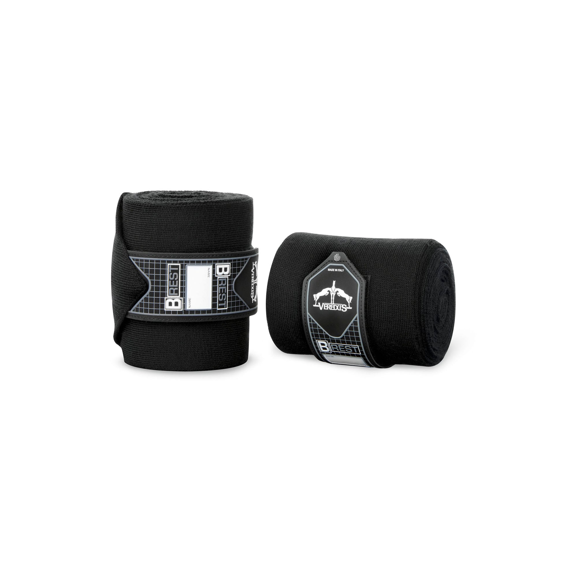 Fasce da riposo di 400cm in acrilico (set 2 pezzi). Ideali per il riposo del cavallo nel box o durante il trasporto. Proteggono e migliorano la circolazione sanguigna nei cavalli con problemi di stasi. Consigliate con sottofasce Anatomic Bandage Pad Veredus.