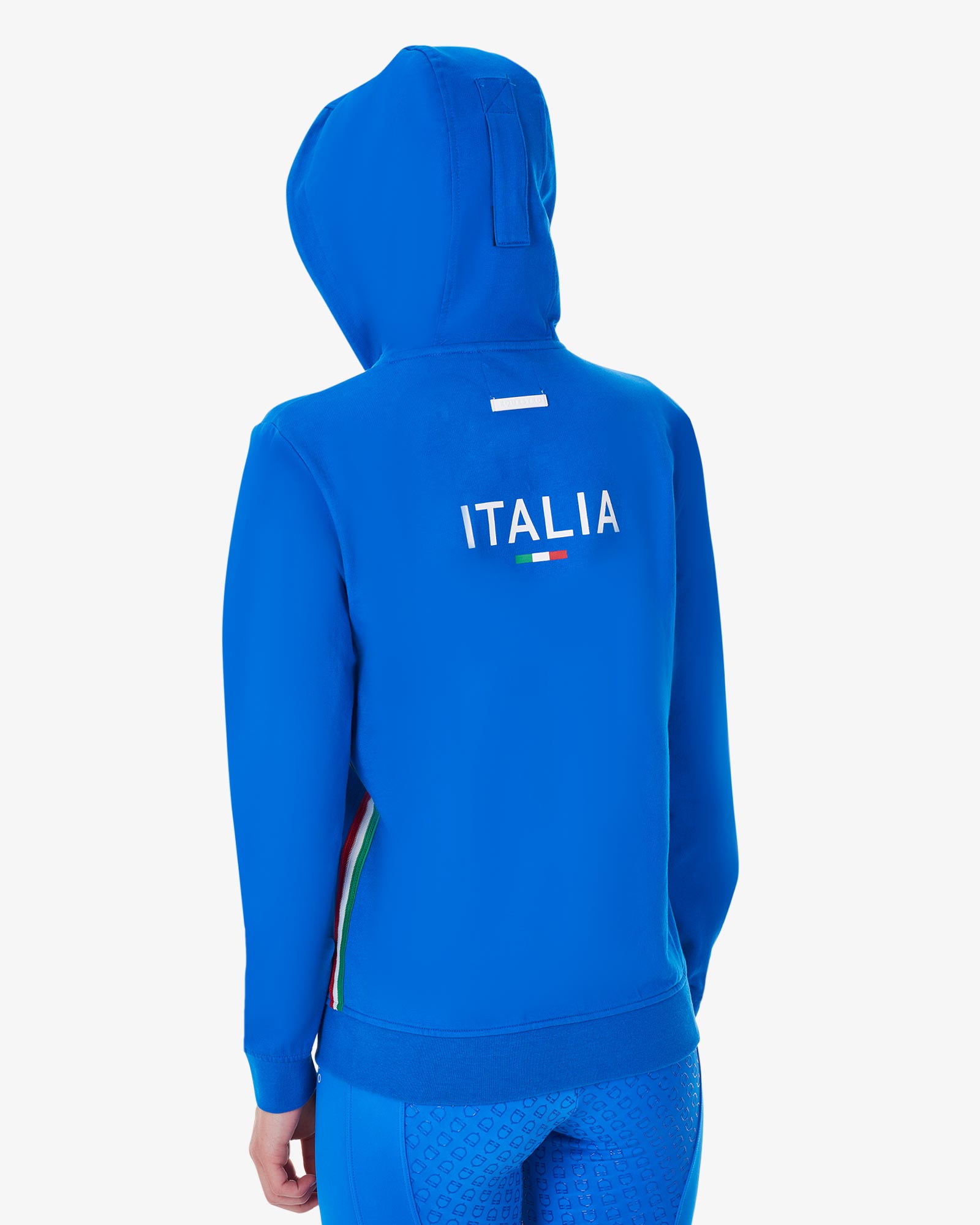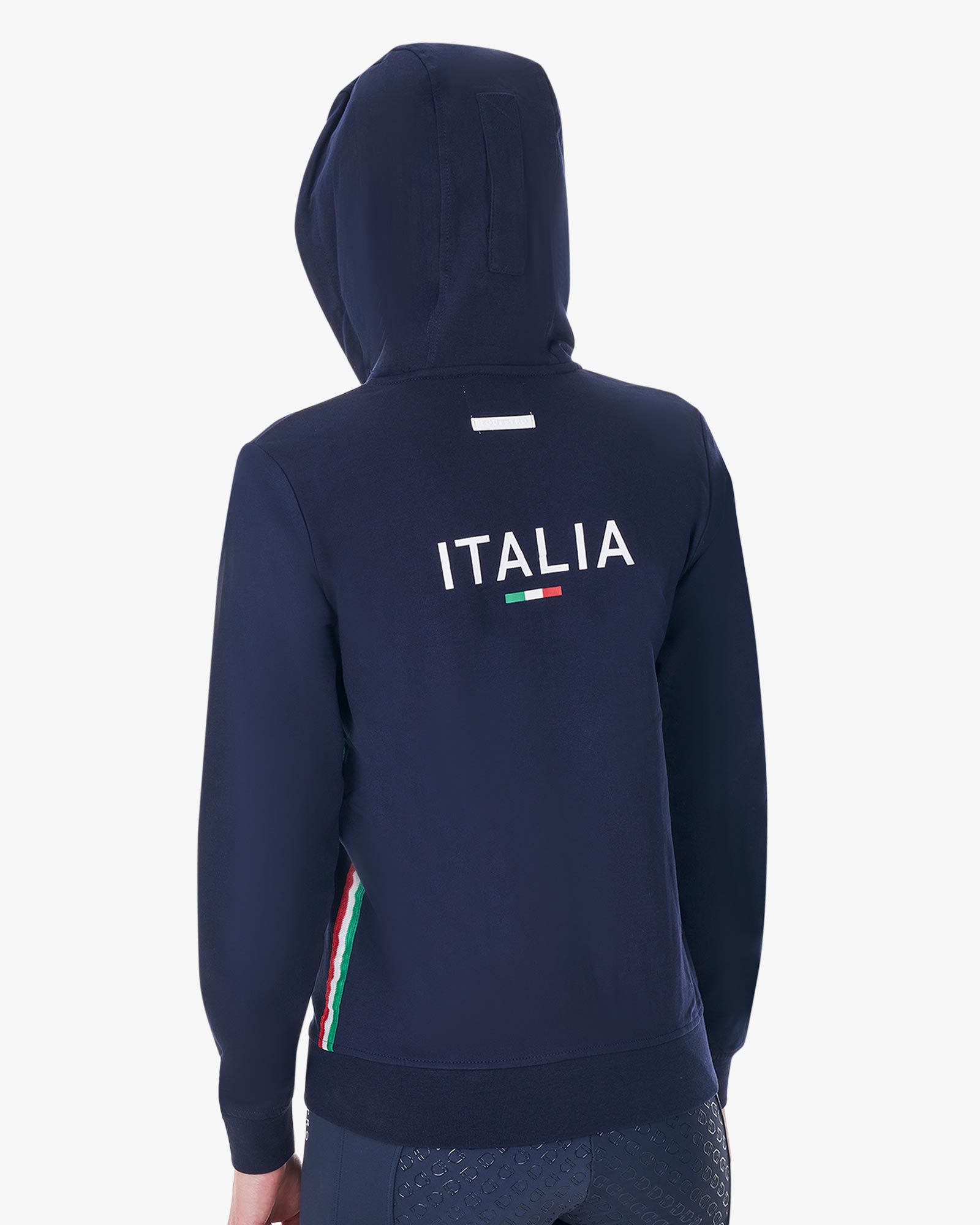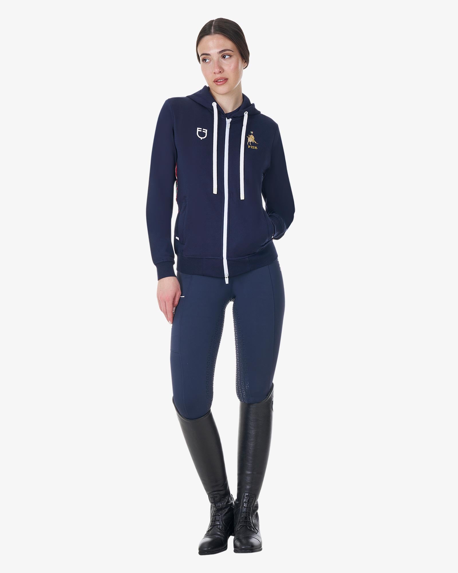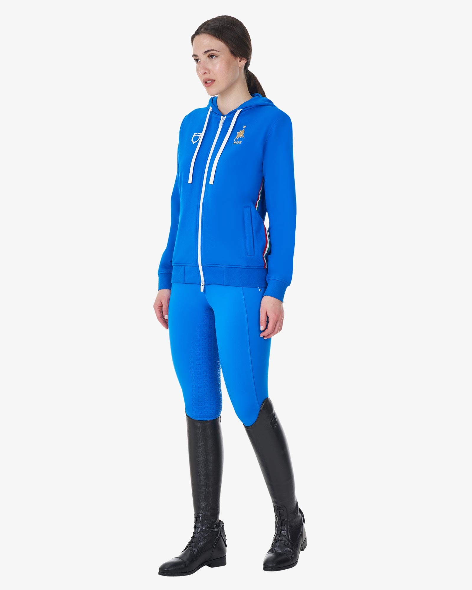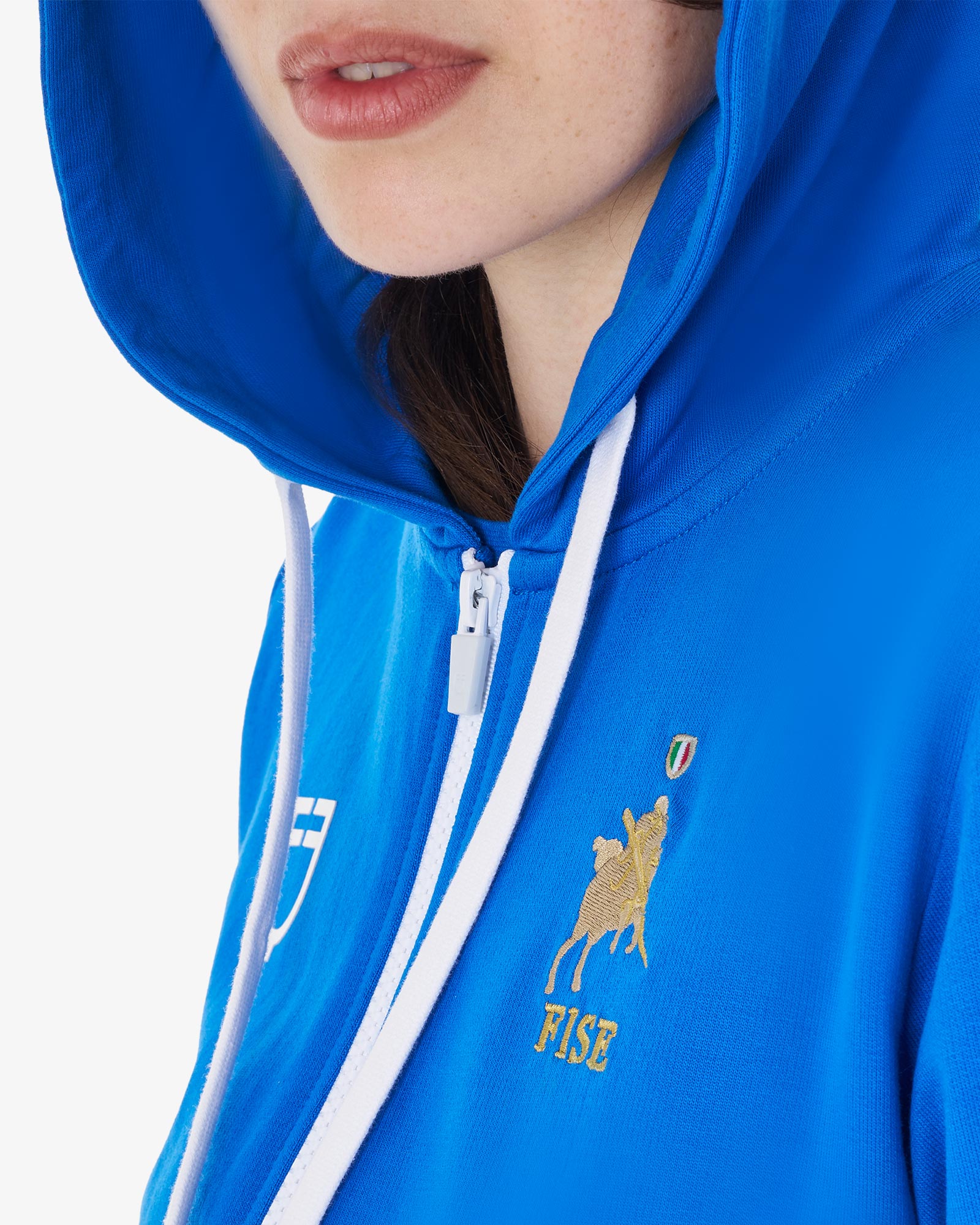 Felpa donna Equestro X FISE realizzata in morbido cotone con pratica zip frontale antivento e cappuccio regolabile, per offrire al cavaliere un'impareggiabile comfort.