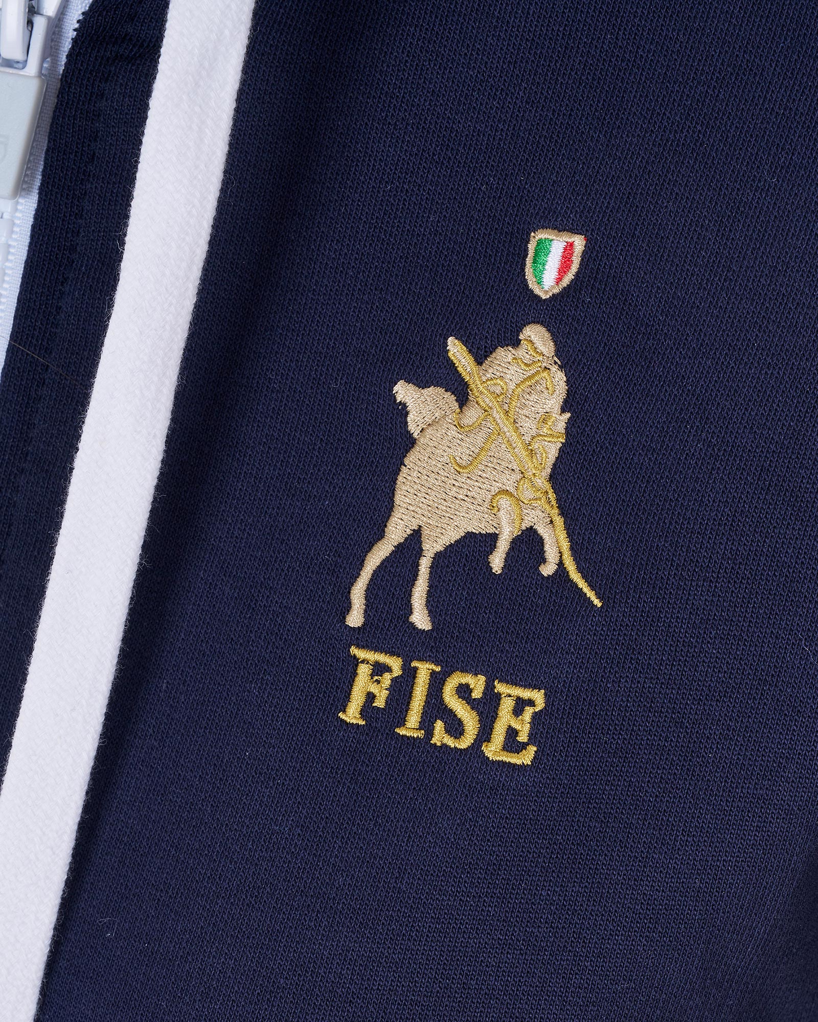 La presenza di decorazioni in piping a contrasto, rende il capo elegante, in pieno stile Equestro e i ricami FISE rendono la felpa unica nel suo genere.