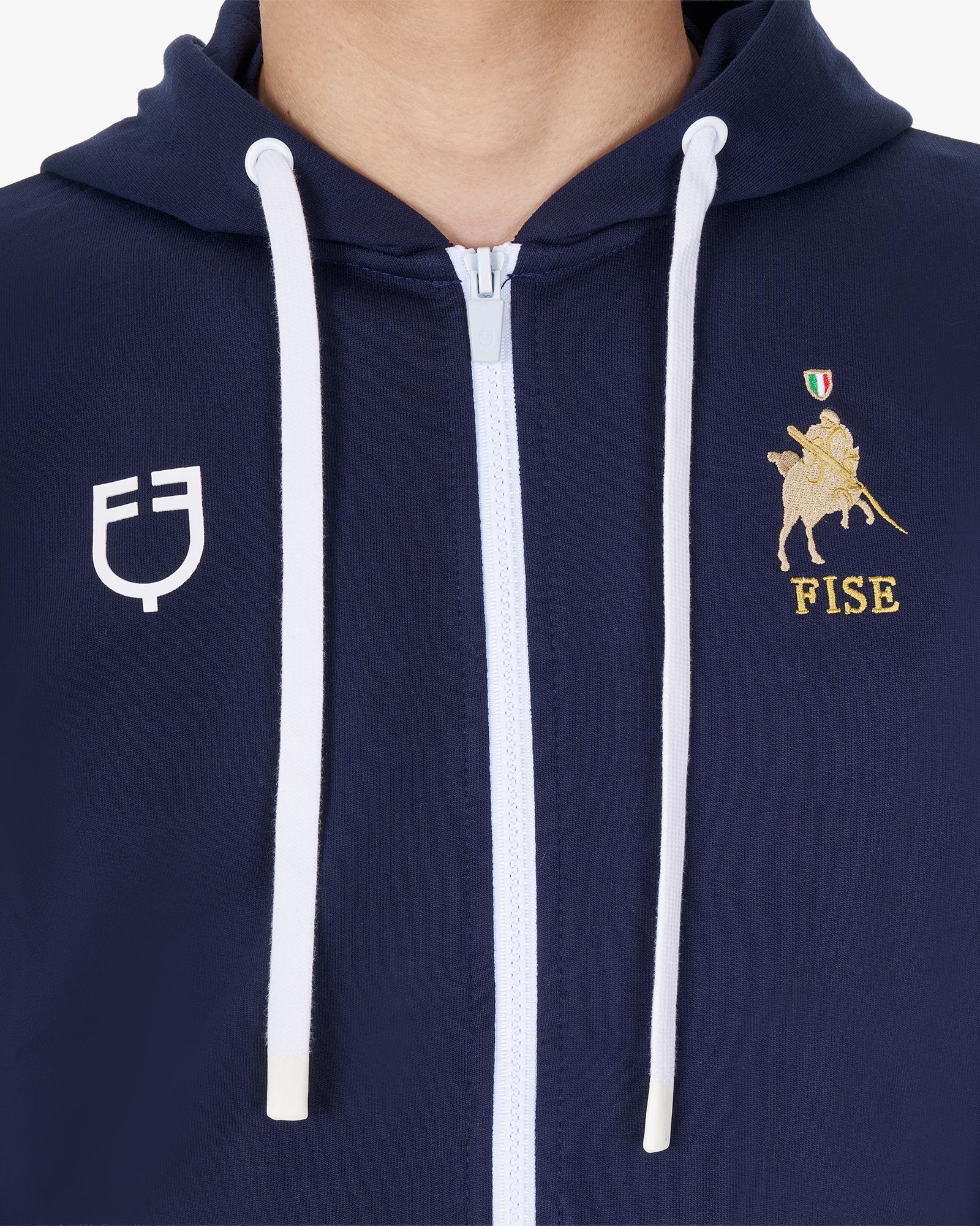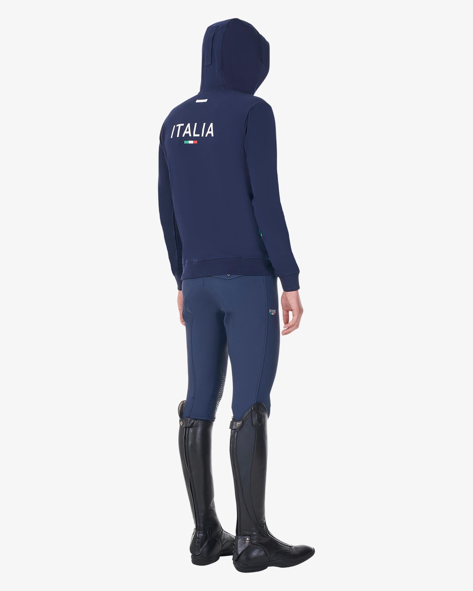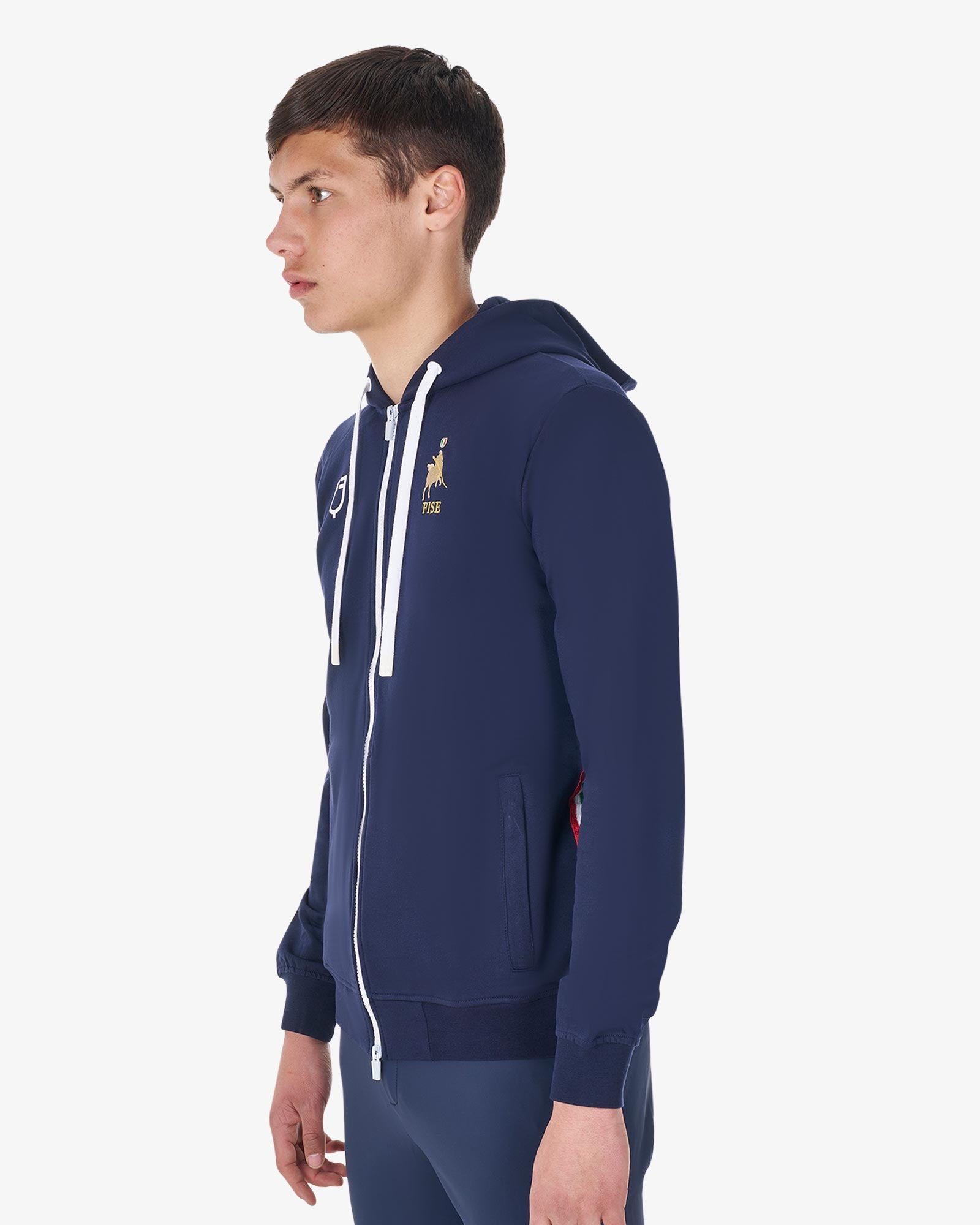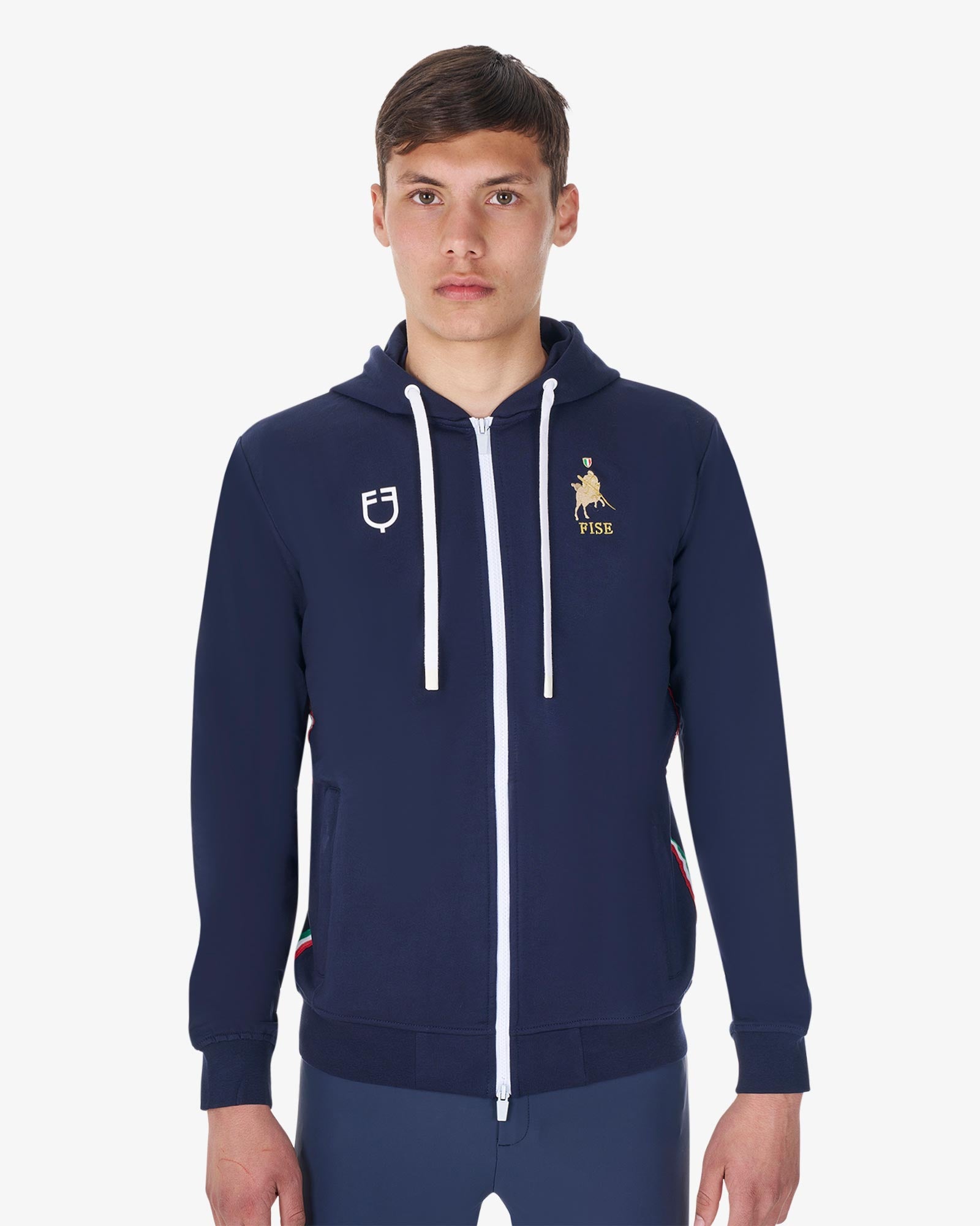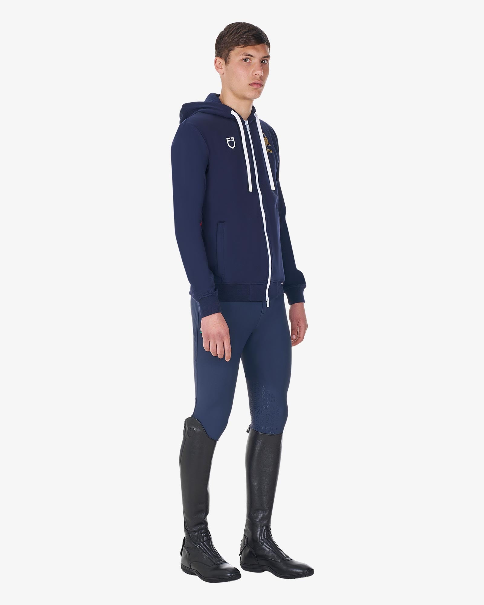 Felpa uomo Equestro X FISE realizzata in morbido cotone con pratica zip frontale antivento e cappuccio regolabile, per offrire al cavaliere un'impareggiabile comfort.