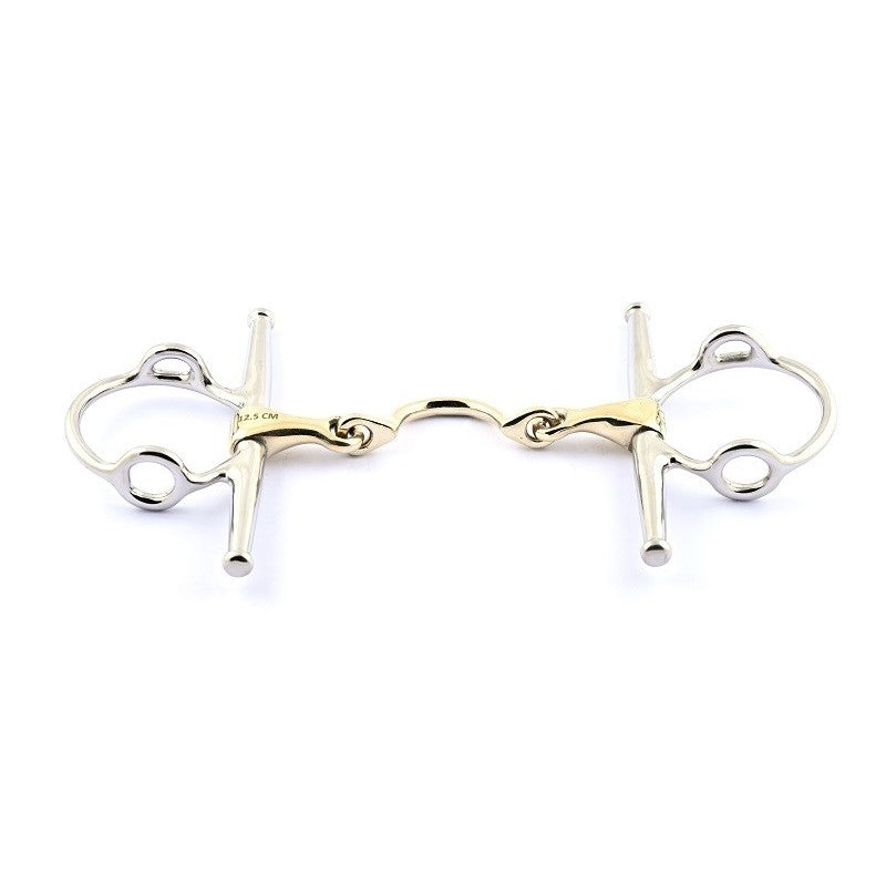 Questo elevatore è composto da 65% rame, 23% zinco, 12% nichel. Agisce sull'equilibrio del cavallo costringendolo a riequilibrarsi e a trasferire la sua massa ai quarti posteriori. Più grandi sono gli anelli, maggiore è l'azione del rilievo. La presenza delle aste, invece, aiuta a mantenere la corretta direzione. L'ampio passaggio della lingua permette di avere un cavallo più incanalato in bocca, che posizionerà meglio la lingua, quindi respirerà meglio e potrà essere più concentrato nel lavoro.