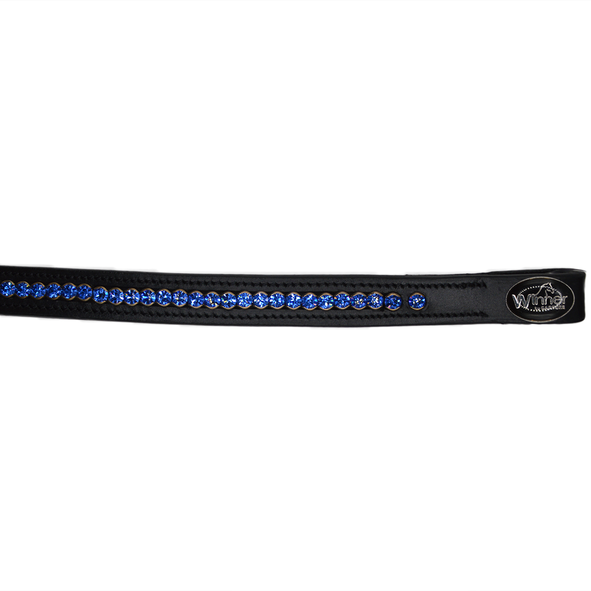 Frontalino Winner con strass blu in cuoio da 16mm.