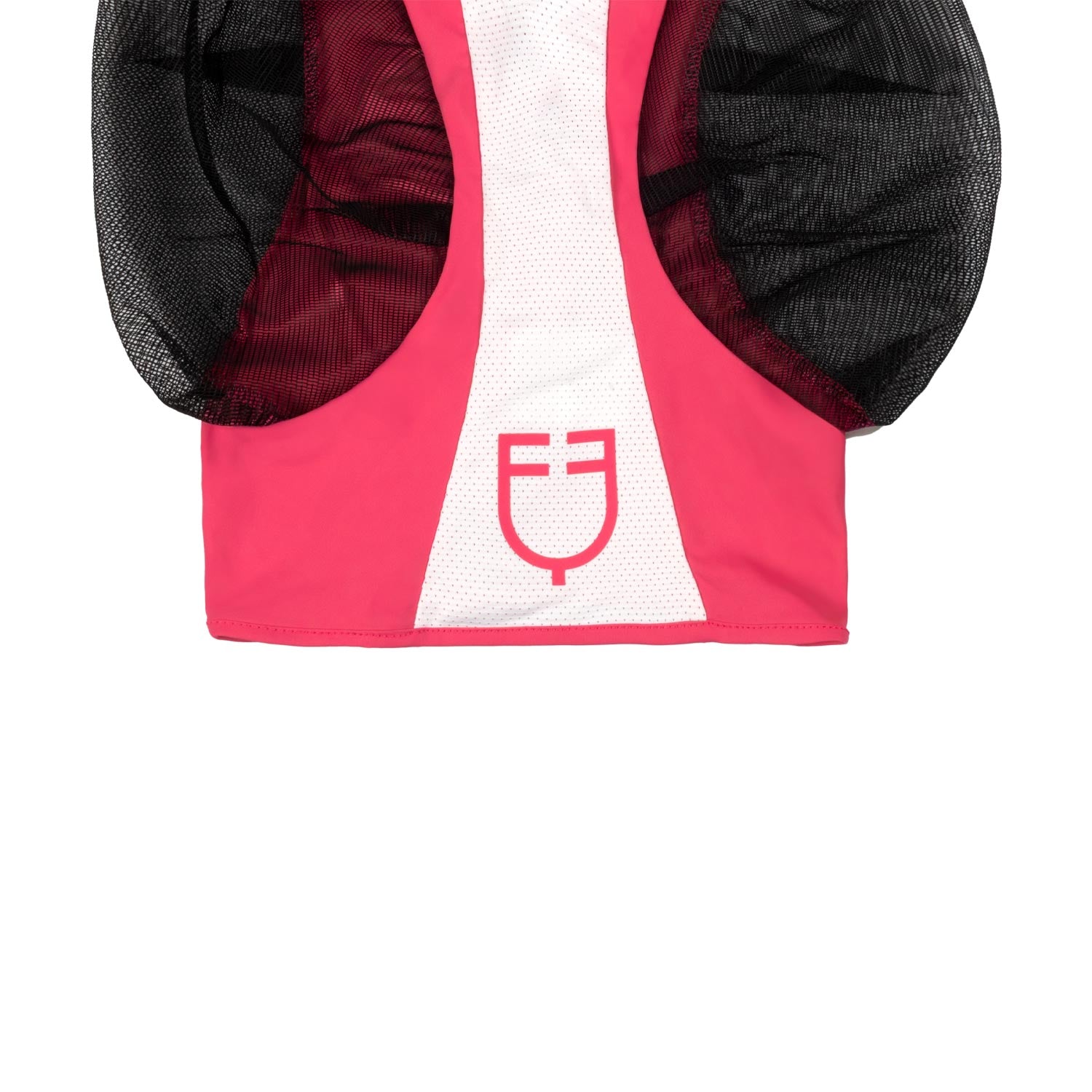 Maschera anti mosche realizzata in lycra e copriorecchie in rete, flessibile e resistente.