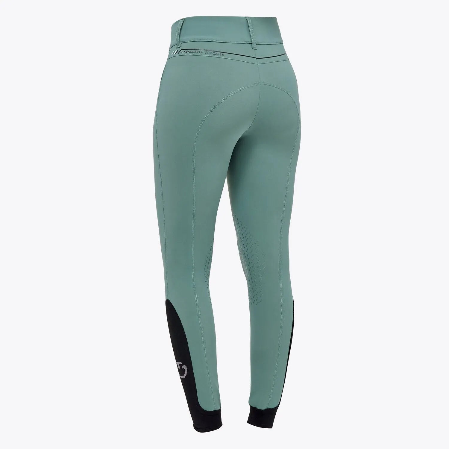 Performance, eleganza e dettagli iconici Cavalleria Toscana sono i segni distintivi di questi pantaloni da equitazione. Il modello è realizzato in tessuto tecnico bi-stretch traspirante e flessibile in quattro direzioni, che garantisce la massima libertà di movimento. Le cuciture ergonomiche modellano la vestibilità, mentre i dettagli in silicone all'altezza del ginocchio forniscono la giusta aderenza durante l'attività a cavallo. La fascia a vita alta è rifinita all'interno con un grip che tiene ferma la camicia e presenta ampi passanti per la cintura e la chiusura con zip coperta e due bottoni. Completano il design i calzini elastici comodi sotto gli stivali con il logo Cavalleria Toscana.