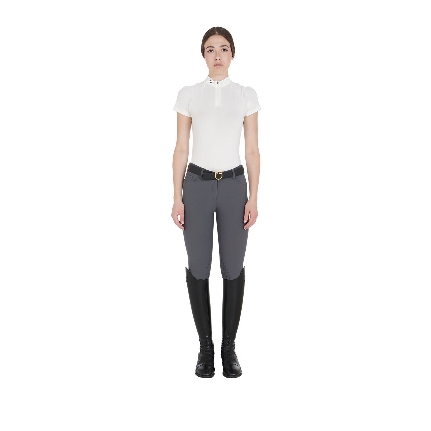 Polo tecnica da donna a maniche corte slim fit in tessuto tecnico traspirante che facilita l'evaporazione e la dispersione del sudore. La polo ha un'ottima vestibilità, consente una totale libertà di movimento e quindi una praticità unica. È dotata di chiusura a zip con sistema antivento, logo Equestro sul colletto e scritta Equestro laterale.