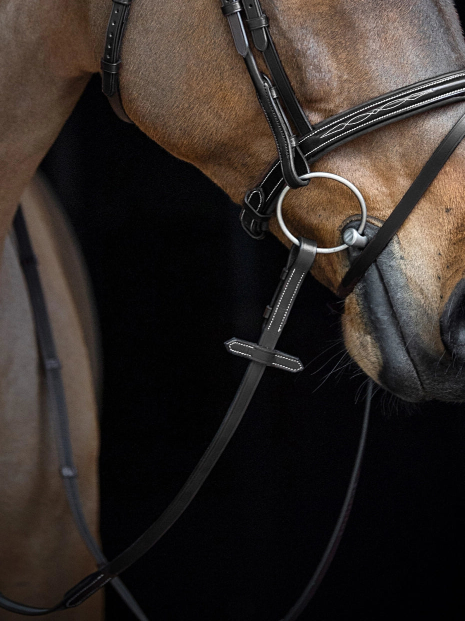 Redini continental antiscivolo in pelle con 7 stop in pelle e ferma martingala. Chiusura a uncino. Larghezza 5/8" e lunghezza 58".
