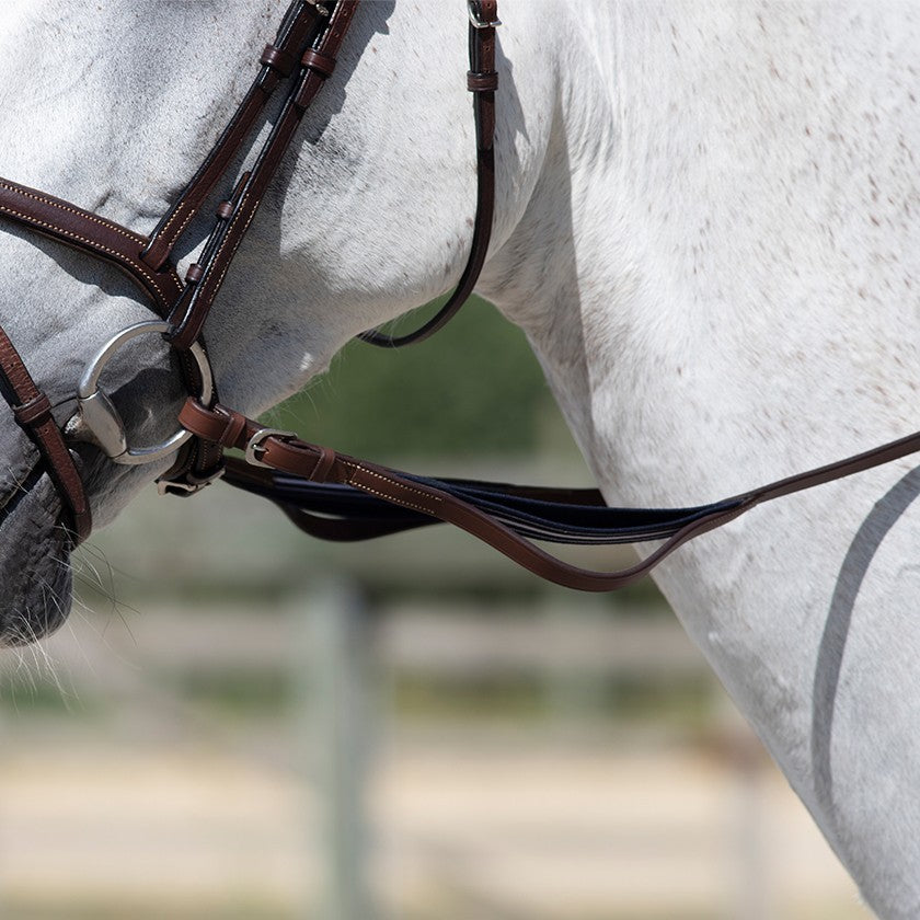 Le redini di precisione larghe 16 mm aiutano il cavallo a rilassarsi e a mettere la mano ai cavalli più giovani. Assicurano contatto ed elasticità grazie agli elastici posti alle estremità. Gli elastici laterali proteggono la bocca del cavallo da possibili azioni brutali o non ben eseguite con le mani. Migliorano il comfort e la stabilità del contatto tra la bocca del cavallo e la mano, qualunque sia il livello del cavaliere. Per le situazioni più complicate, la parte in cuoio aiuta ad avere un contatto più forte.