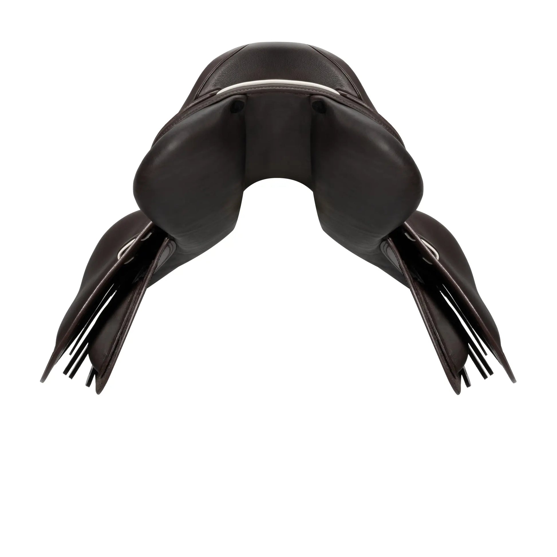La sella Skyward ha un seggio semi profondo che garantisce supporto e stabilità al giovane cavaliere. Il telaio rende la sella particolarmente adatta alle esigenze dei pony e dei cavalli più rotondi. Questa conformazione garantisce massima libertà sia nella zona del trapezio sia della spalla. Le nocche a velcro offrono al cavaliere varie opzioni andando incontro alle diverse esigenze. Gli ampi cuscini e il canale largo assicurano massimo comfort al cavallo. La sella Skyward si adatta ad ogni morfologia di cavallo o pony e a ogni necessità del cavaliere.