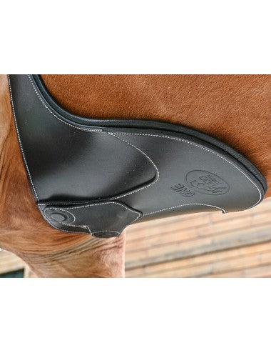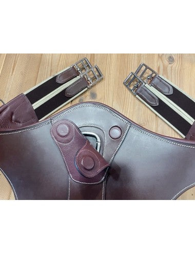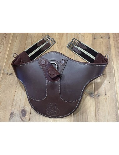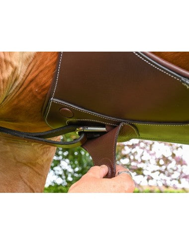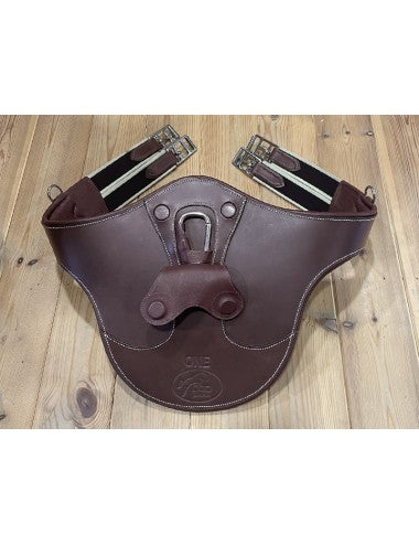 Il sottopancia Safety è dotato di cinghie elastiche da entrambe le parti per offrire maggiore comfort al cavallo. E' inoltre composto da due anelli sui lati e da un moschettone centrale ricoperto da una protezione magnetica per fissare le redini evitando qualsiasi rischio di rimanere incastrati con il moschettone. Viene utilizzato durante le sessioni di allenamento o durante le gare di salto ostacoli per proteggere il cavallo da eventuali urti causati durante la flessione degli anteriori.