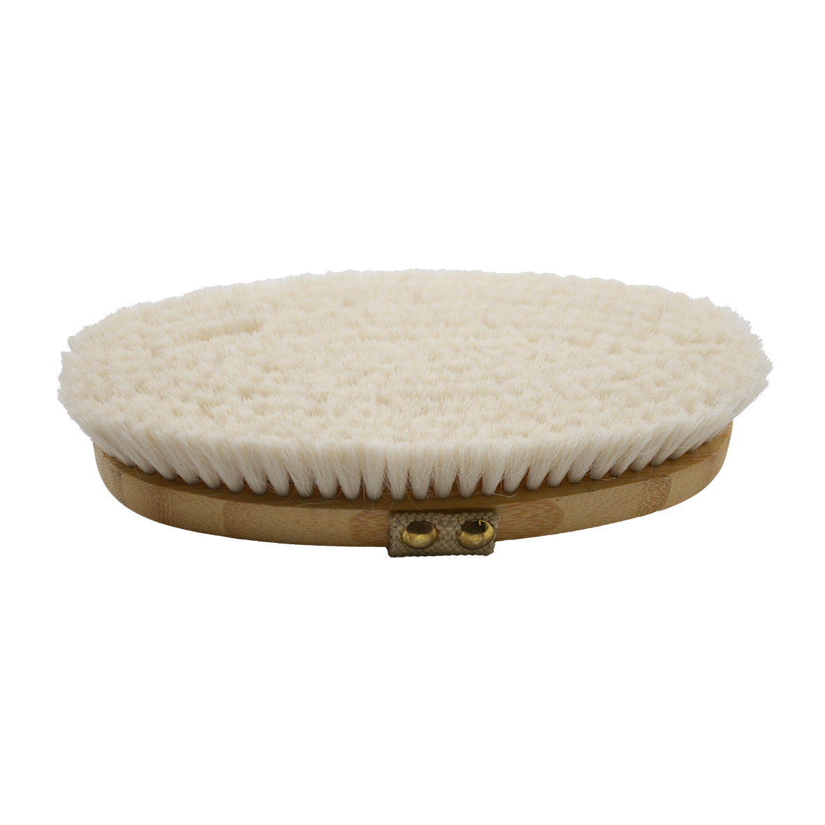 Spazzola con dorso in bambù e con passamano per una presa più sicura e confortevole. Le setole di capra sono molto morbide e sono ideali per cavalli con pelle sensibile o per parti delicate del cavallo, ad esempio la faccia.