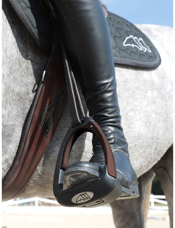 La staffa X-CEL disegnata da Equiline nasce da 30 anni di esperienza e know-how nel mondo dell’equitazione. Presenta un innovativo sistema di sicurezza, con apertura laterale. Il sistema di apertura/chiusura facilita la fuoriuscita del piede in caso di necessità, allo stesso tempo permette di riposizionare il piede rapidamente. La panca inclinata garantisce un ottimo equilibrio del cavaliere. Tecnologia innovativa e sicurezza si fondono con un design ergonomico e uno stile active, soddisfacendo le esigenze di tutte le amazzoni e i cavalieri.