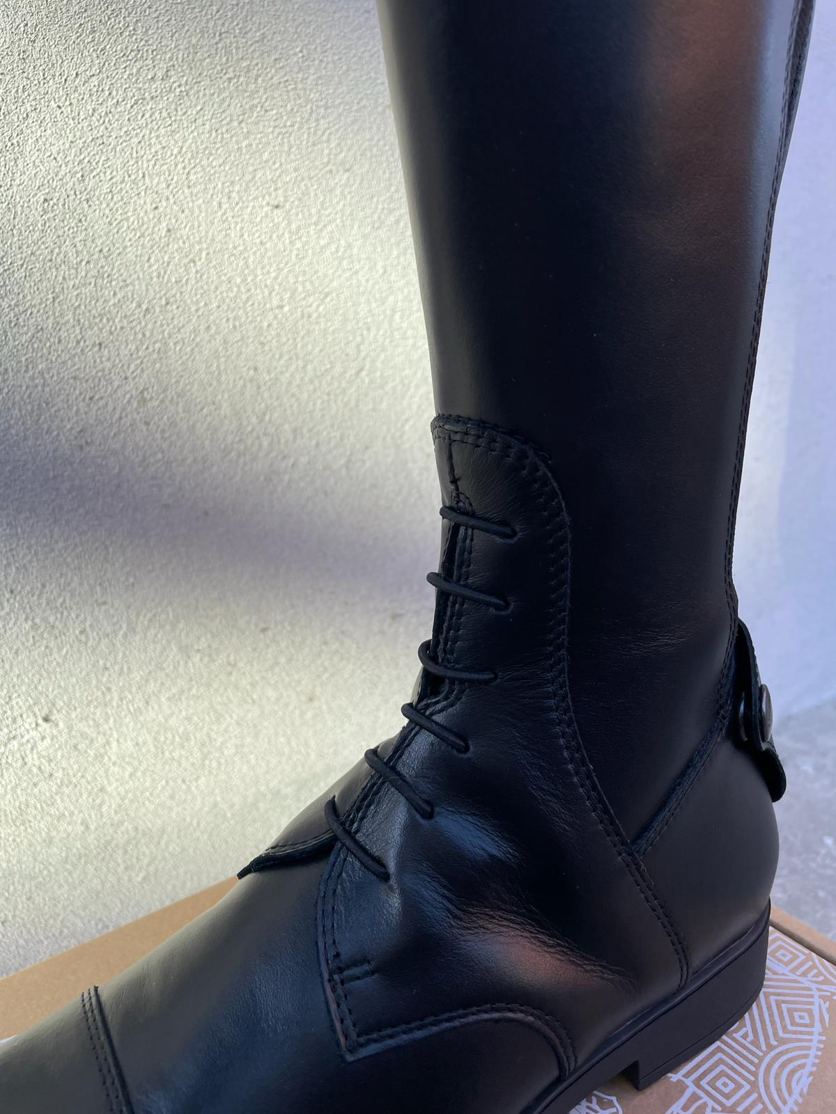 Con uno speciale sistema, i cavalieri possono regolare gli speroni a proprio piacimento in tre diverse altezze, rendendo questi stivali un grande passo avanti nell'abbigliamento equestre.