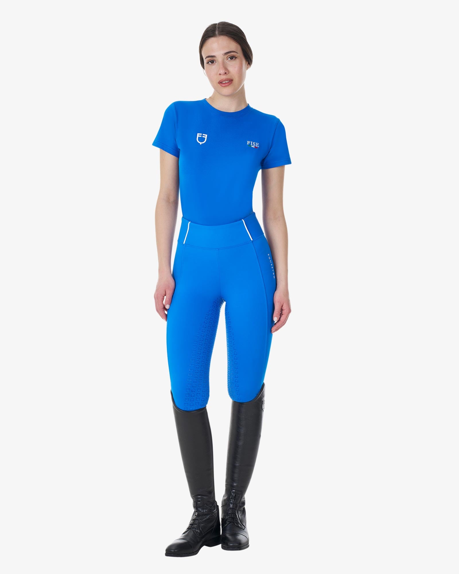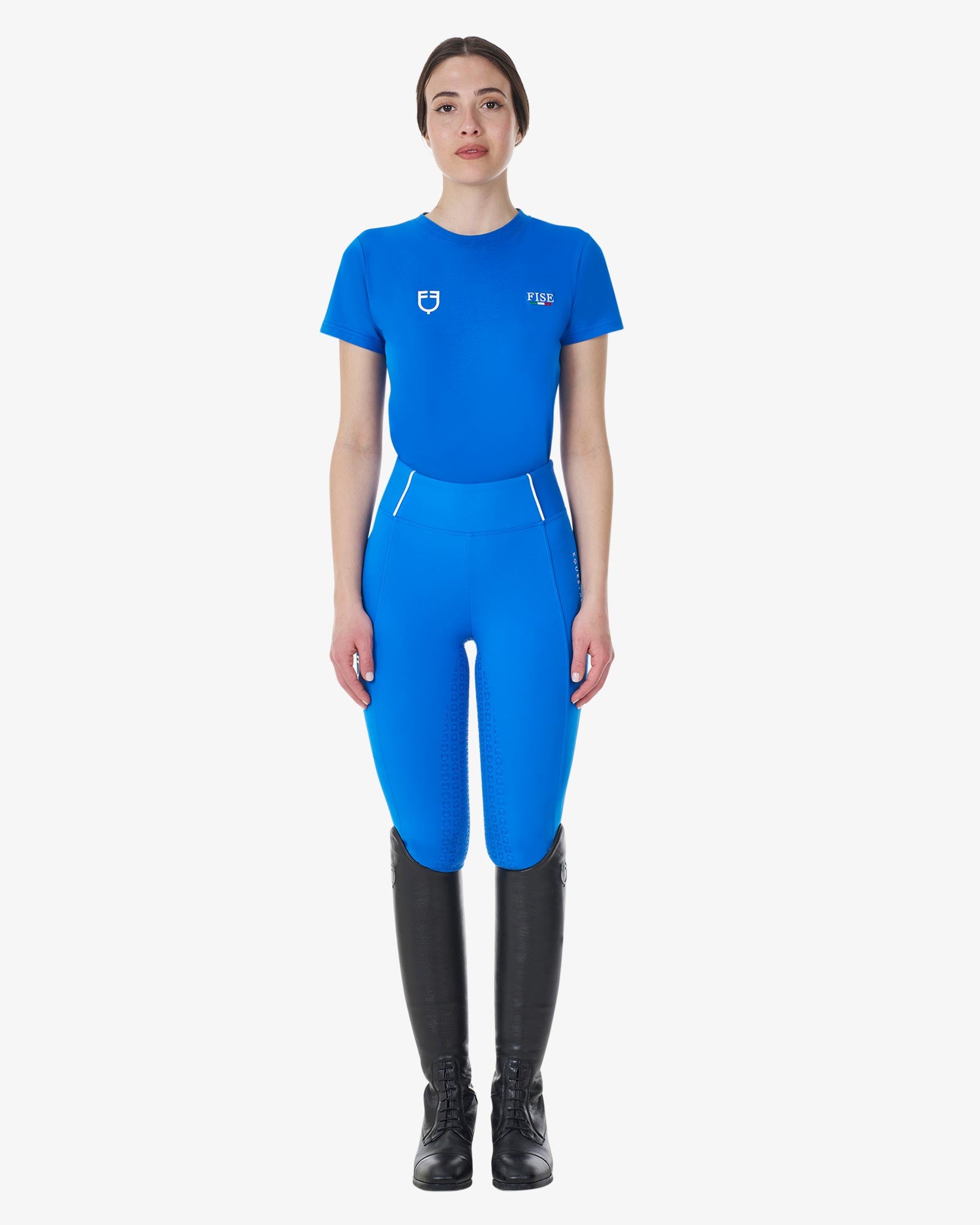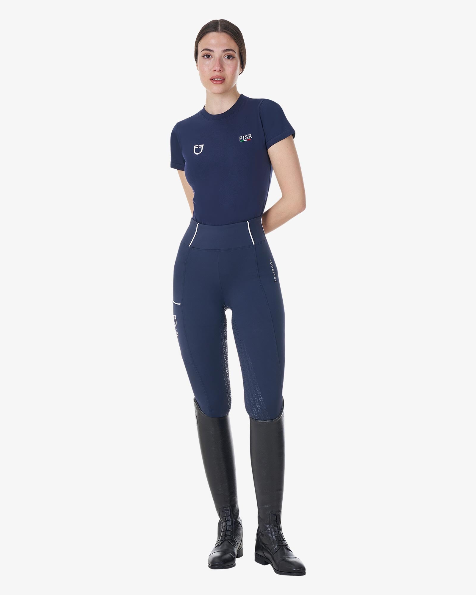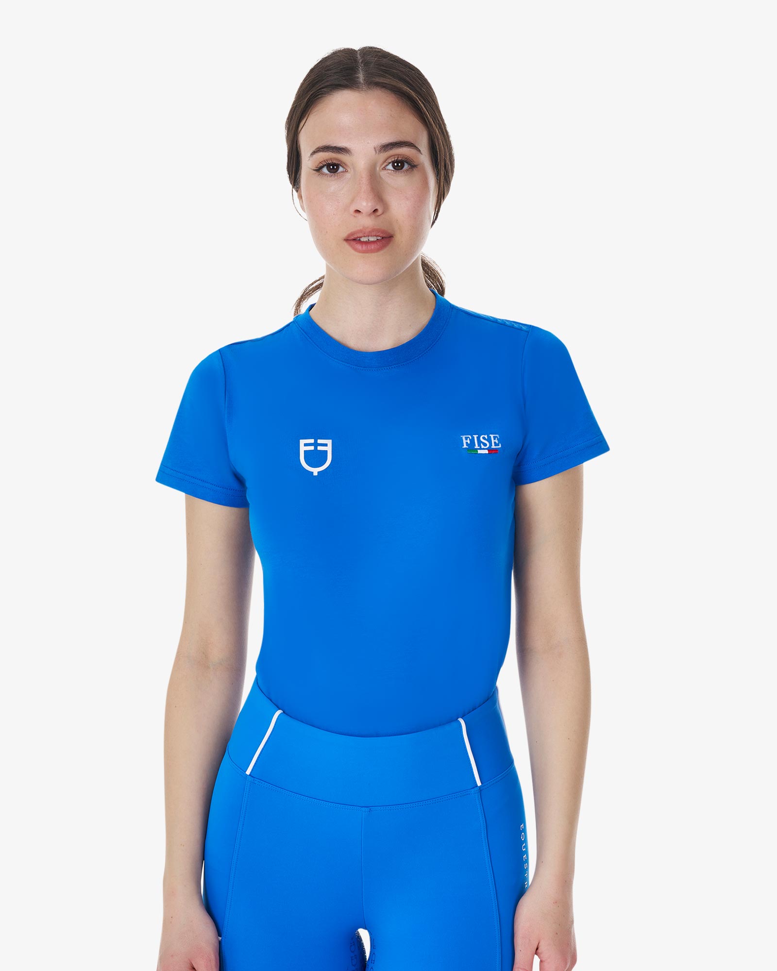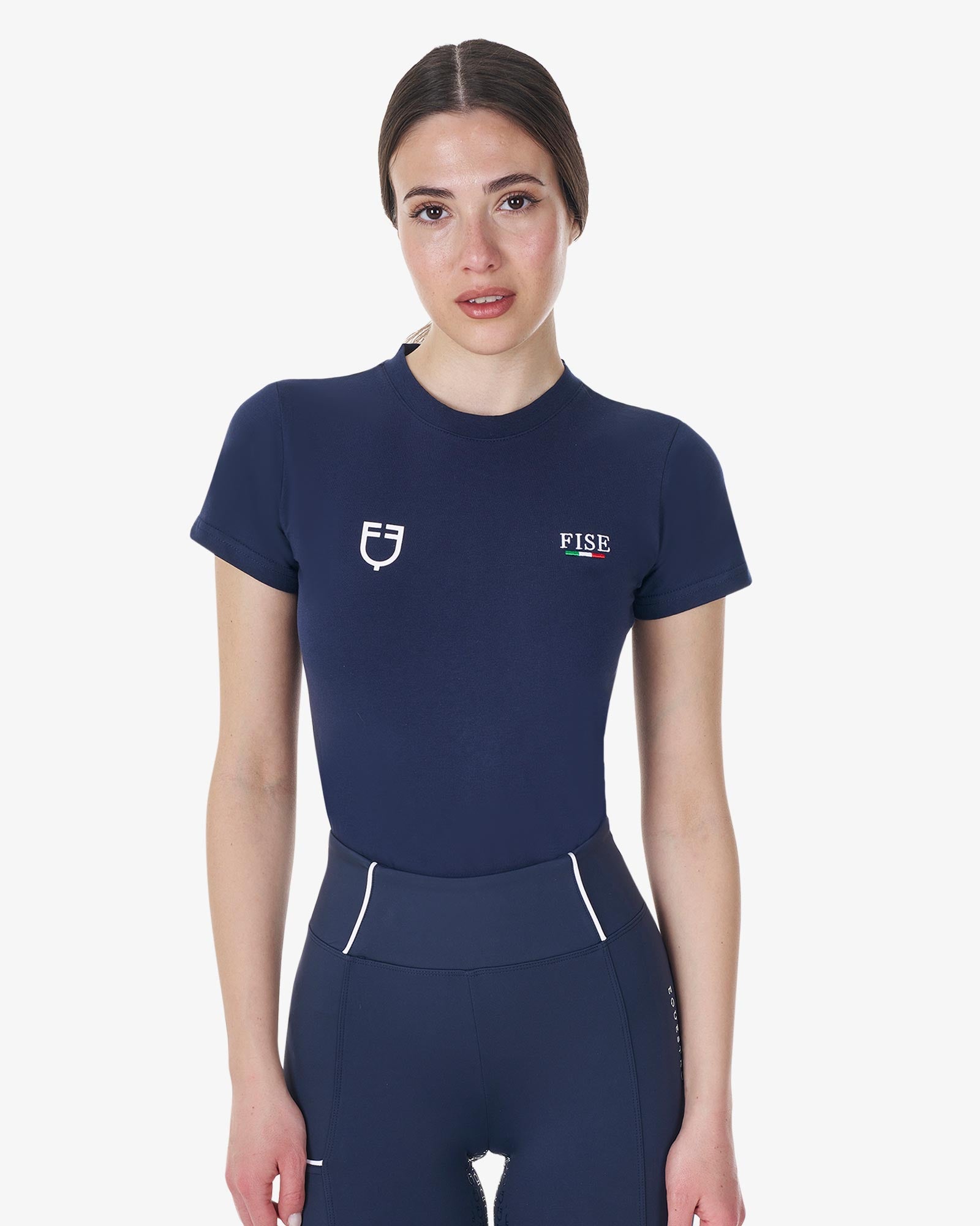 T-shirt donna slim fit Equestro X FISE in cotone a mezza manica super performante e pratica, perfetta per la stagione estiva.
