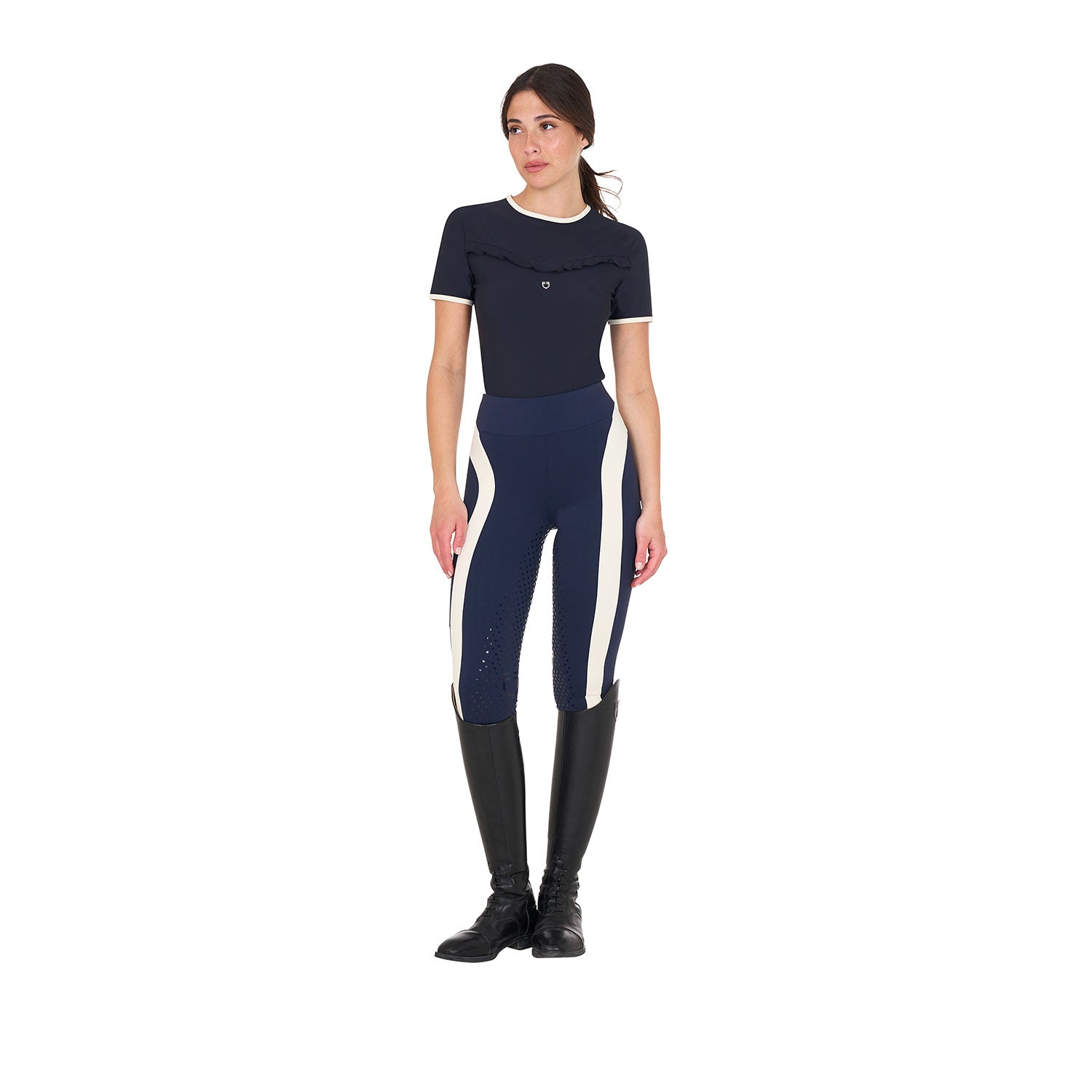 Il punto di forza del capo è la raffinatezza donata dai dettagli che sono curati minuziosamente come la ruches e i bordini a contrasto elasticizzati. Questi aggiungono un tocco di eleganza e glamour all'outfit sportivo e la rendono la scelta perfetta per chi cerca un articolo che unisca perfettamente moda e performance in allenamento.