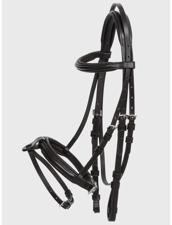 Eleva l'eleganza del tuo pony con la nostra testiera meticolosamente progettata. La testiera Pony Equiline da 5/8" è dotata di copricapo, frontalino e capezzina imbottiti. Capezzina chiudi-bocca alla francese. Un elegante logo in rilievo sul copricapo completa la testiera.