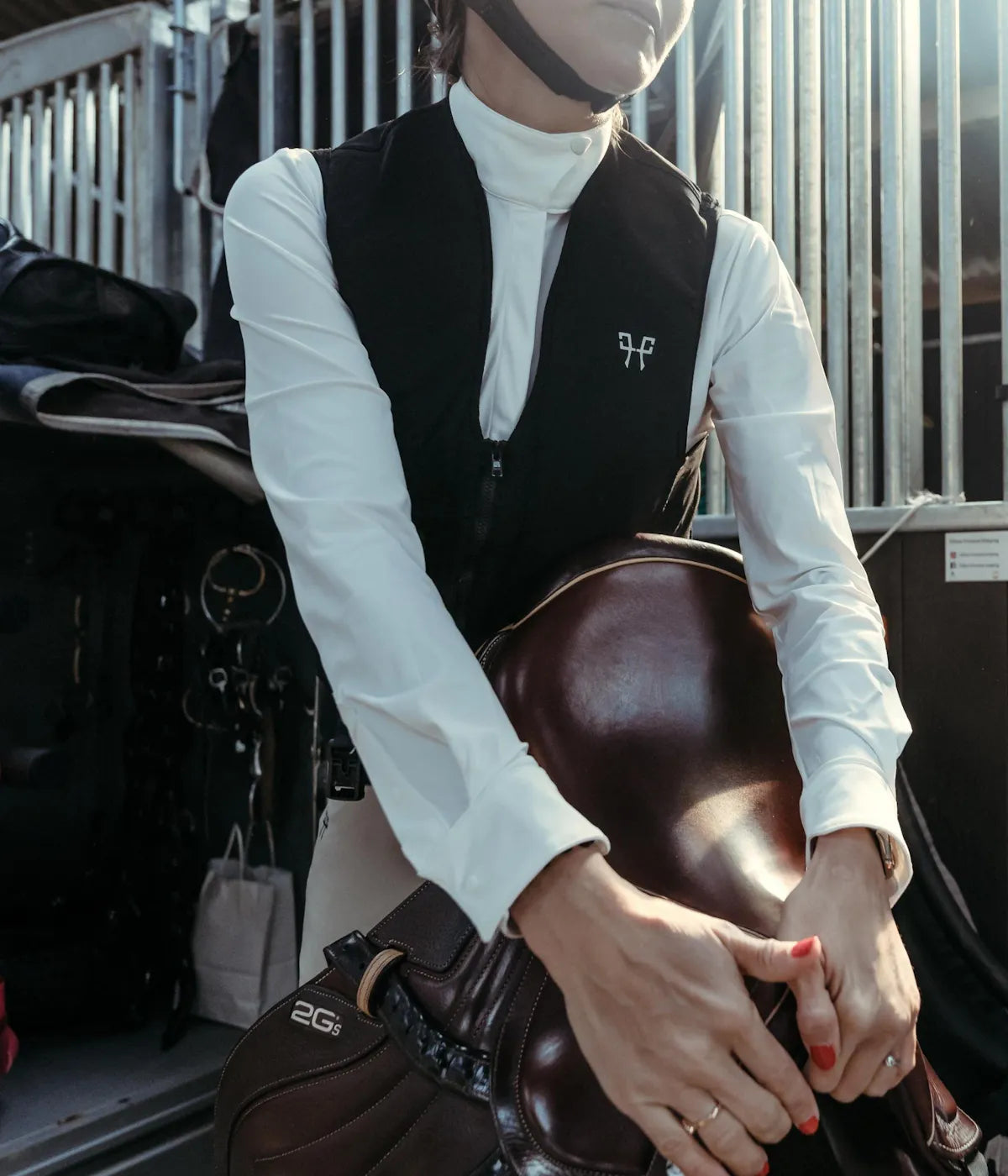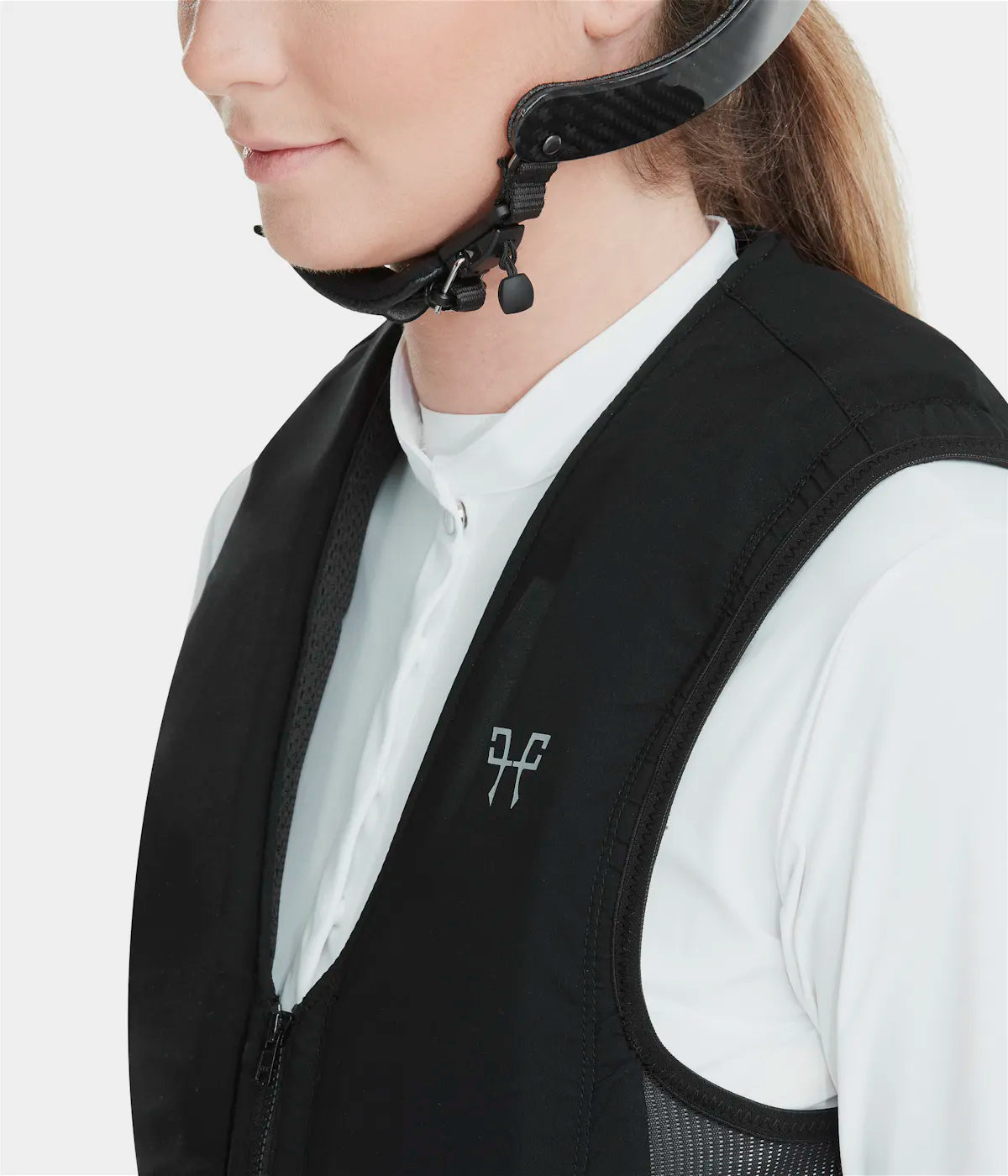 Un gilet airbag da equitazione prodotto in Francia e certificato dalla nuova norma NF S72-800:2022 che garantisce protezione, comfort e discrezione. L'airbag viene fornito con un cordino e una bomboletta di gas.